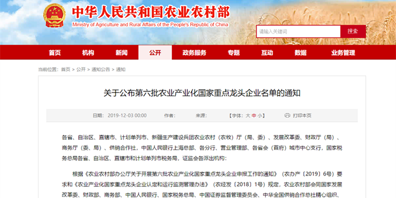 12月3日,农业农村部、国家发展改革委、财政部、商务部、中国人民银行、国家税务总局、中国证券监督管理委员会、中华全国供销合作总社联合印发通知,公布第六批 299 家农业产业化国家重点龙头企业名单,龙江龙8在线登录官网-龙8(中国)公司榜上有名。