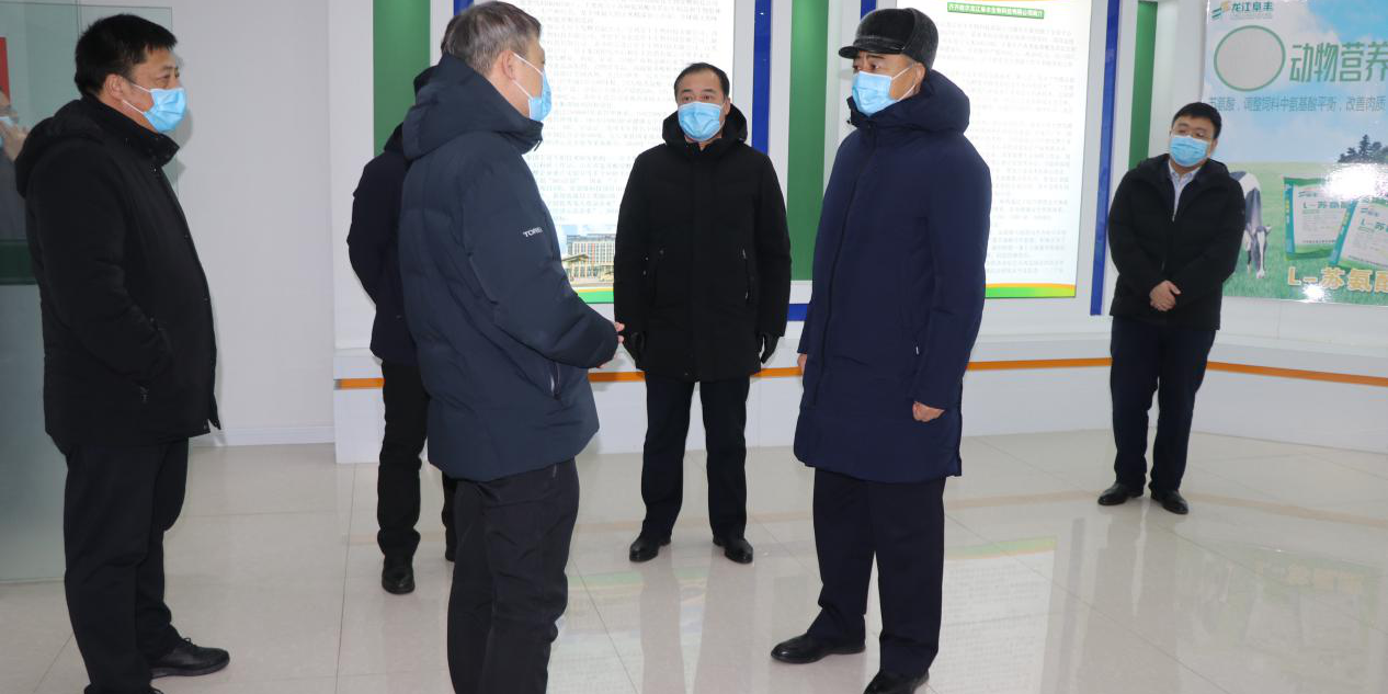 2 月 10 日,黑龙江省人大常委会副主任、齐齐哈尔市委书记孙珅到龙江龙8在线登录官网-龙8(中国)公司检查新型冠状病毒肺炎疫情防控及企业生产情况,昂昂溪区区委书记邸伟、区长任广才等相关领导陪同调研。公司总经理王峰接待。